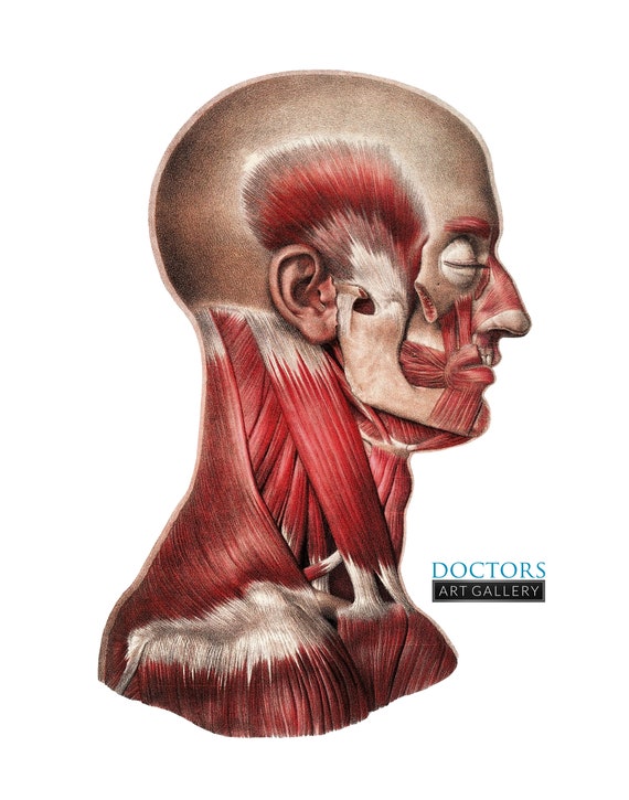 Neck And Face Muscle Vintage Human Anatomy Art Print Etsy